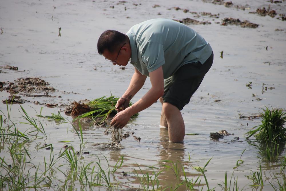 活动的最后,团队来到了合肥北乡稻虾养殖基地,了解了现代农业生产与乡村振兴战略的结合点,在林岳的带领下,大家纷纷脱去鞋袜,走入田地,进行插秧,潜移默化的接受劳动教育。这不仅是对农业知识的学习,也是对国家发展战略的实践认识。