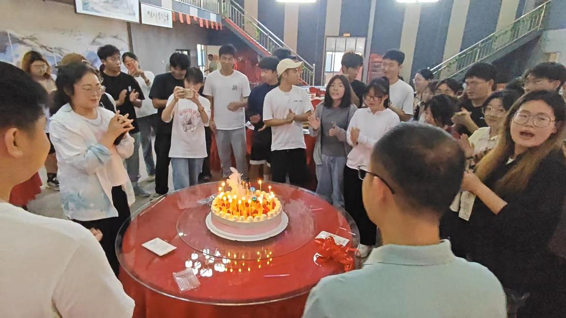 午时就餐,工作人员将准备好的22寸大蛋糕取出,插上蜡烛,大家欢聚一堂,齐唱生日歌为张湘茹同学庆祝生日。