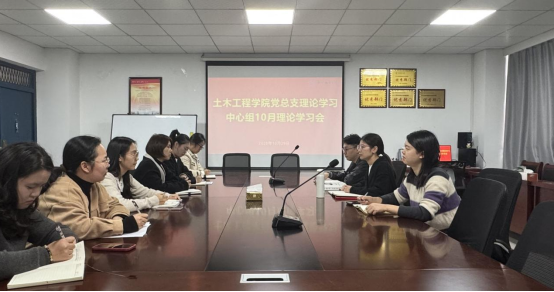 10月29日下午,土木工程学院党总支理论学习中心组在实验楼北302会议室召开10月学习会,专题学习党的二十届四中全会公报内容和会议精神。会议由土木工程学院党总支副书记张敬知主持,学院党总支委员、各党支部书记参会。