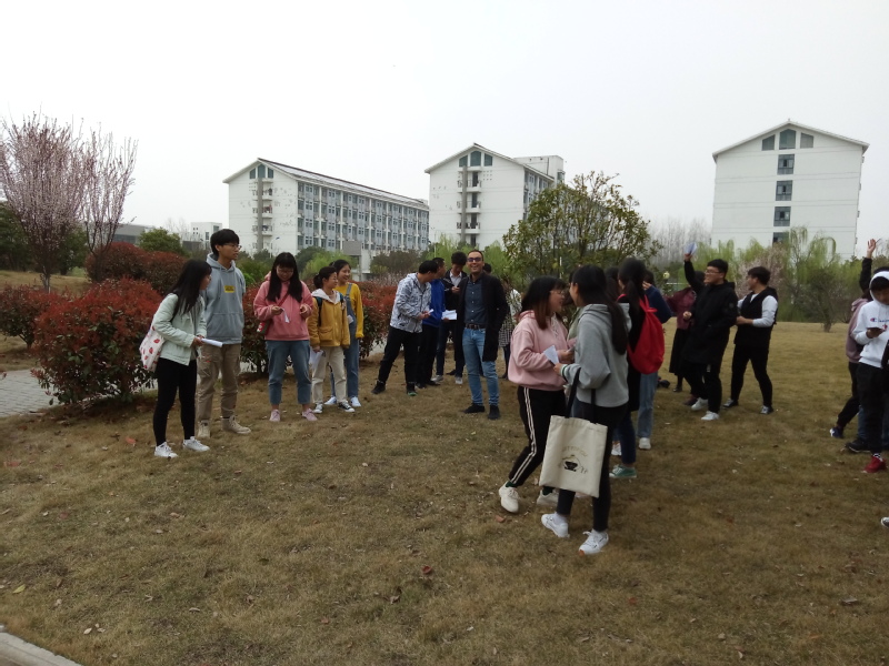 在学习之余,Kevin博士带领同学们走出教室玩起了“耳语游戏”,同学们在学习英语的同时既获得了极大的乐趣也能促进同学们之间的关系,气氛十分融洽。游戏结束后Kevin博士还为大家分发小奖品,同学们乐在其中。