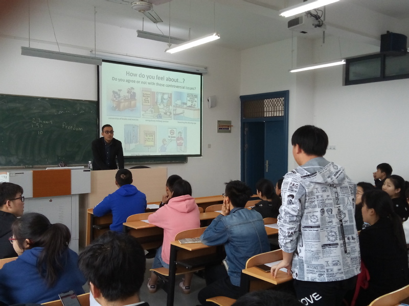 活动开始,Kevin博士给同学展示了一些关于司法系统的图片并邀请同学们各自阐述了自己的观点。随后又通过幻灯片的形式向大家展示了关于司法系统的热门词汇,告诉大家这些都是考研、考雅思的热点话题。接下来Kevin博士向大家介绍了与司法相关的问题,并与同学们讨论了各国以及各地区犯罪行为和犯罪原因,同学们讨论热烈,回答积极踊跃。