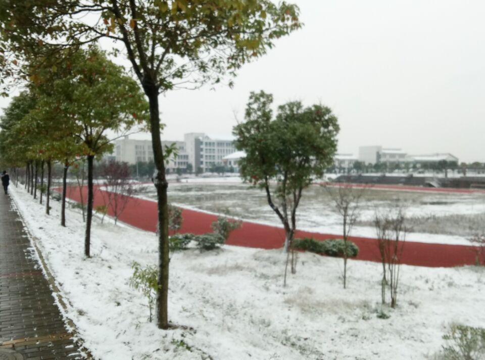 我看到很多同学满怀欣喜漫步于林荫小道,看到很多同学热情洋溢于雪中拍照,我看到很多同学不畏严寒于教室听课……窗外,雪花还在冬日的天空里静静的缤纷,散落一地,如同绽放的礼花,一团团,一簇簇,细密优雅的划着弧线,飘洒着冬日的浪漫。远方被雪花弄的模糊了。近处,樟树顶上蒙了层薄薄的白色,绿色显的更艳了,有些红色的叶子不停的从绿色,白色中挤出来,欣赏这美丽的初雪。初雪的天并不十分寒冷。同学们三三两两的走在一起,黄的,蓝的小伞这肃寂的冬增添了一抹亮色。有人直接让雪花与自己亲密接触,任由雪花飘落在头发上,衣服上,落在脖子里化成小水滴。我想是否有人嘴角挂着笑期盼一场更浪漫的雪,一场尽情的打雪仗。