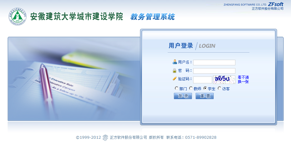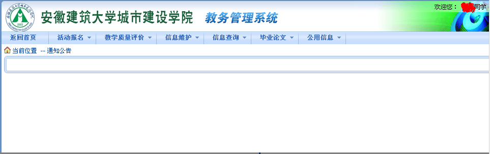 第一步:登录安徽建筑大学网站点击右上方进入城市建设学院网站,点击右上方办公系统后进入正方教务管理系统(或直接在浏览器地址栏中输入172.16.23.244进入),输入用户名(学号)和密码(首次登陆密码为身份证号码),点击登录。
