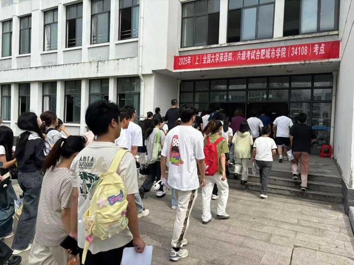 6月14日,进入新利官网2025年上半年全国大学英语四六级考试在学校滨湖和北城两个校区同步顺利举行。本次考试共有6180名学生报名参加,考场分别设置在滨湖校区的东、西、南教学楼和北城校区的综训楼。