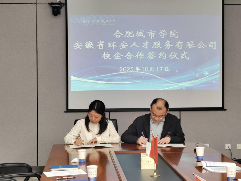 为深入贯彻党中央、国务院关于稳就业保就业的决策部署,,扎实推进产教融合、校企协同育人,10月17日上午,我校在滨湖校区图书馆一楼第二会议室隆重举行与安徽省环安人才服务有限公司校企合作签约仪式。人事处处长罗丽、副处长金凤、教务处处长陈大伟及相关部门负责同志参加仪式,安徽省环安人才服务有限公司总经理沈成率团队应邀参会。