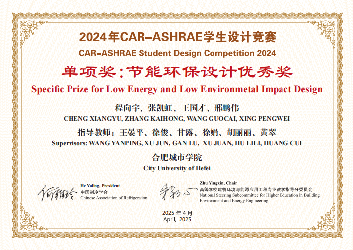 制冷展会期间,CAR-ASHRAE学生设计竞赛颁奖礼于4月28日也在上海新国际博览中心成功举行,竞赛旨在推进我国建筑环境与能源应用工程专业教学改革,提高本专业学生实际设计水平,发现和培养行业后备人才,促进国际交流。我校环能专业获得此次设计竞赛三等奖及节能环保设计优秀奖两个奖项。