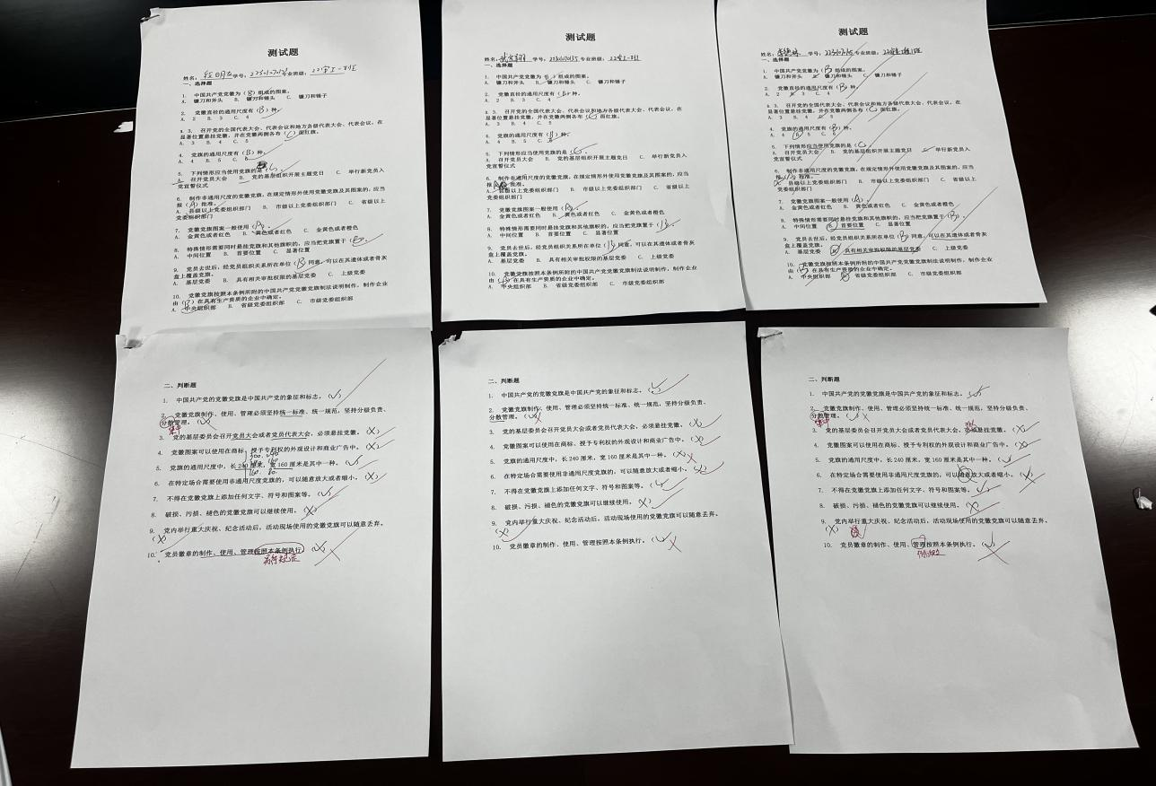 会上,与会成员共同围绕《条例》中党徽党旗的历史沿革、制作规范、使用场景及政治意义展开深入学习,通过逐章研读、重点解读,进一步明确党徽党旗作为党的象征和标志的神圣地位,强化了尊重和维护党徽党旗的政治自觉与行动自觉。为检验学习成效,支部书记凌芳现场组织知识测试,全体成员沉着作答、认真思考,以考促学、以学促用,切实将条例内容内化于心、外化于行,确保学习成果落地见效。