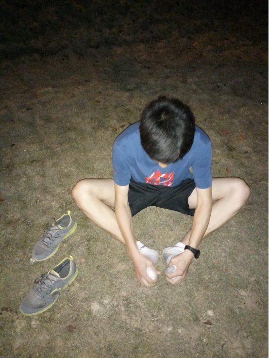 每次开跑前,潘典洋都会做好充足的热身运动,以免在跑步的过程中受伤。他不管做任何事都有一股认真的劲。尽管只是几个简单的热身动作,他也会把每一个小细节都做到位。除了几个基本的热身动作,他在自己多年的锻炼过程中不断摸索,创出了两个独特的热身动作。