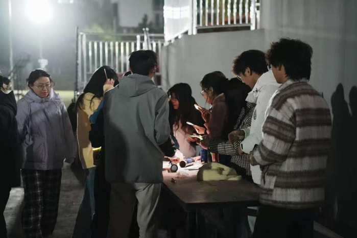 晚上7点30分,随着一声哨响,数百名“哪吒跑团”同时点亮手中荧光装备,如潮水般涌向赛道。夜色中,荧光点点如星河流动,与教学楼灯光交相辉映。学子们化身“现代哪吒”在操场上自由翱翔,同学们相互激励的呐喊声此起彼伏,既热血又充满“哪吒精神”。